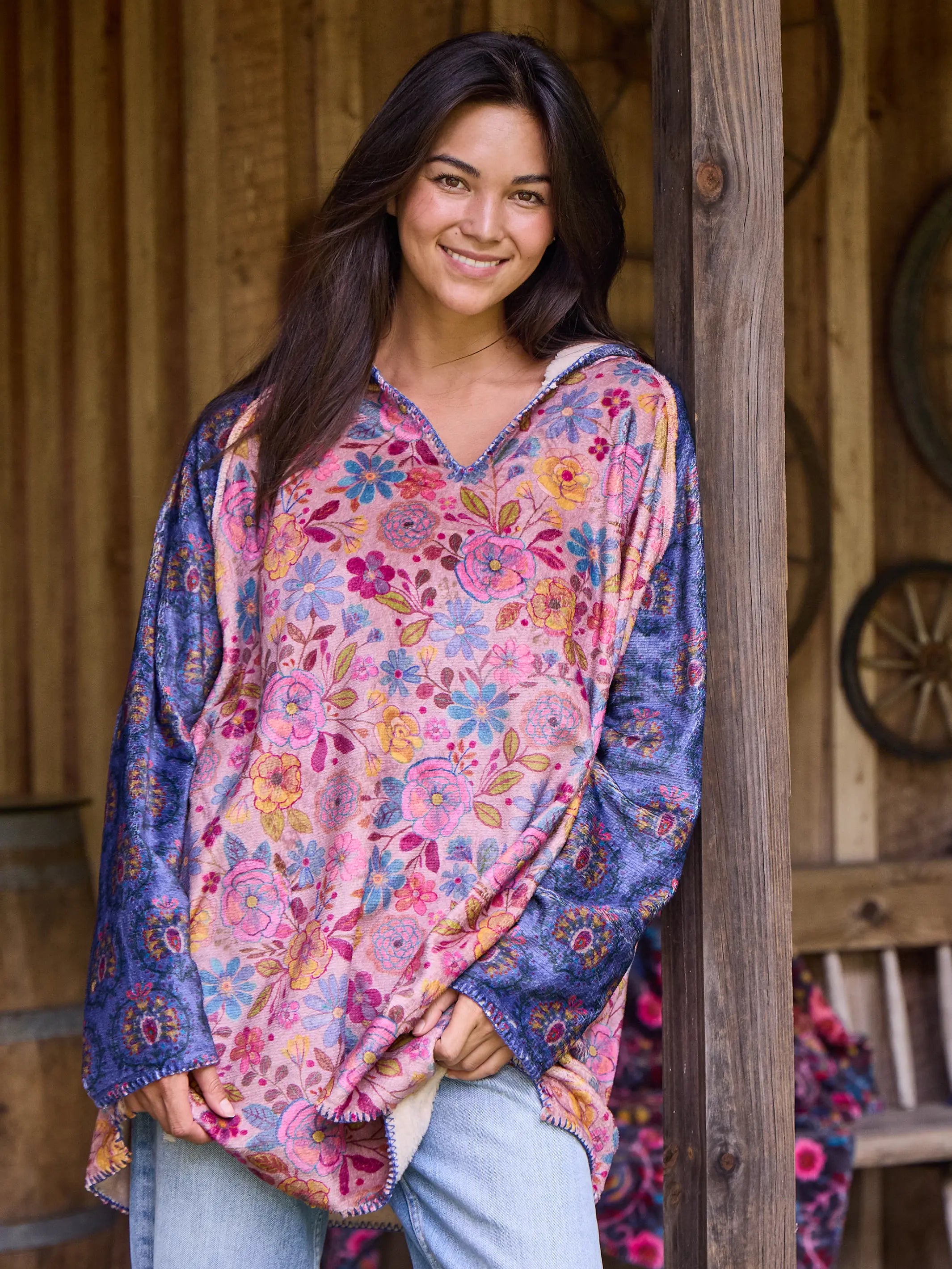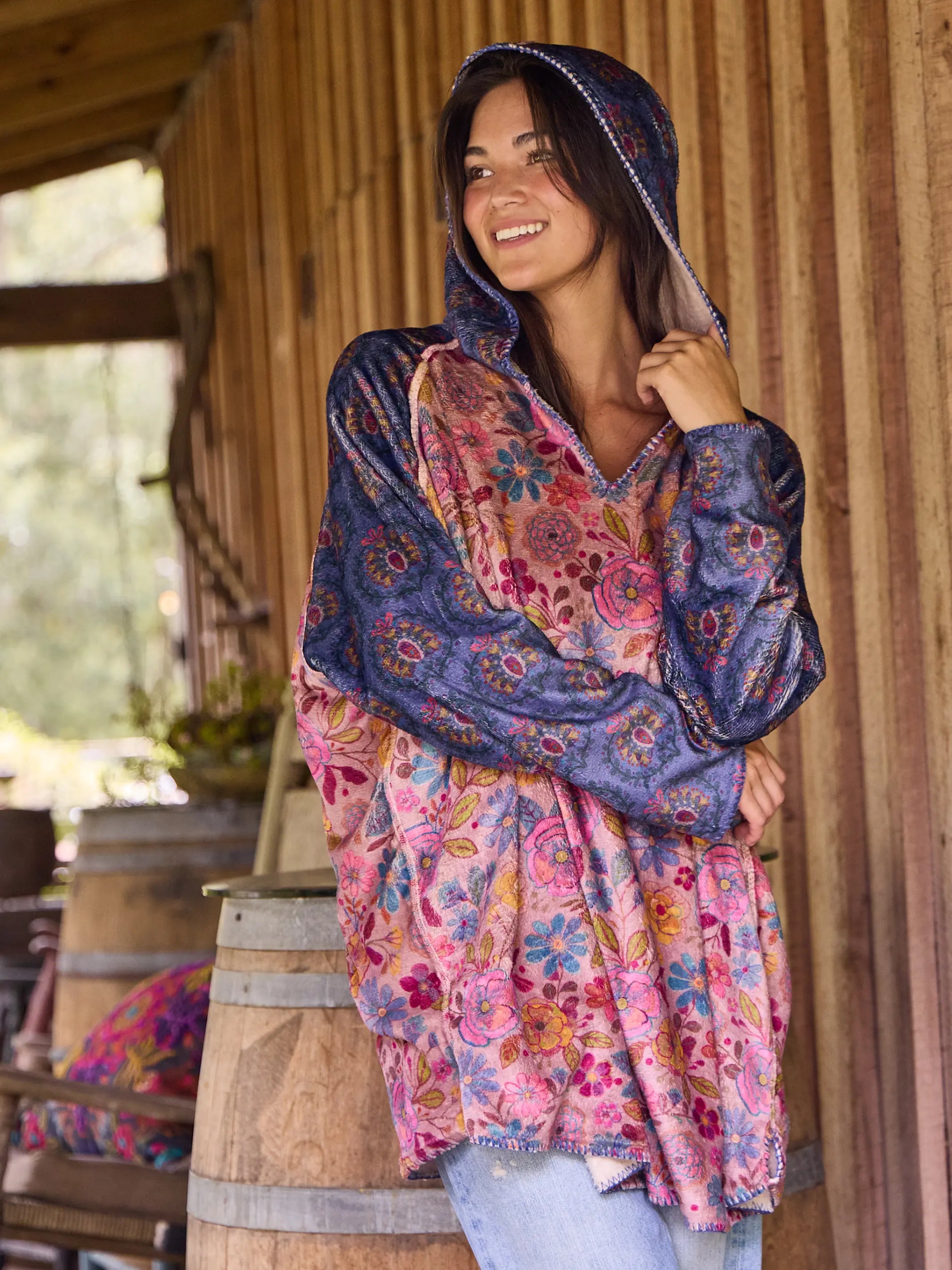 Cozy Blanket Hoodie - Light Pink Navy Medallion