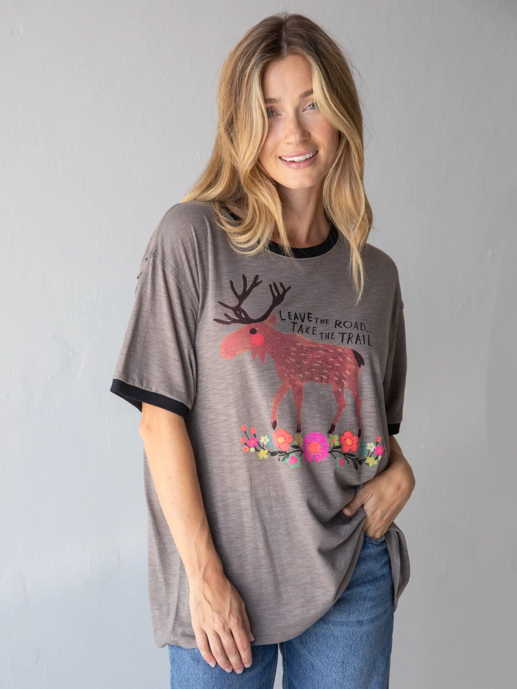 Ringer Oversized Tee Shirt - Take The Trail