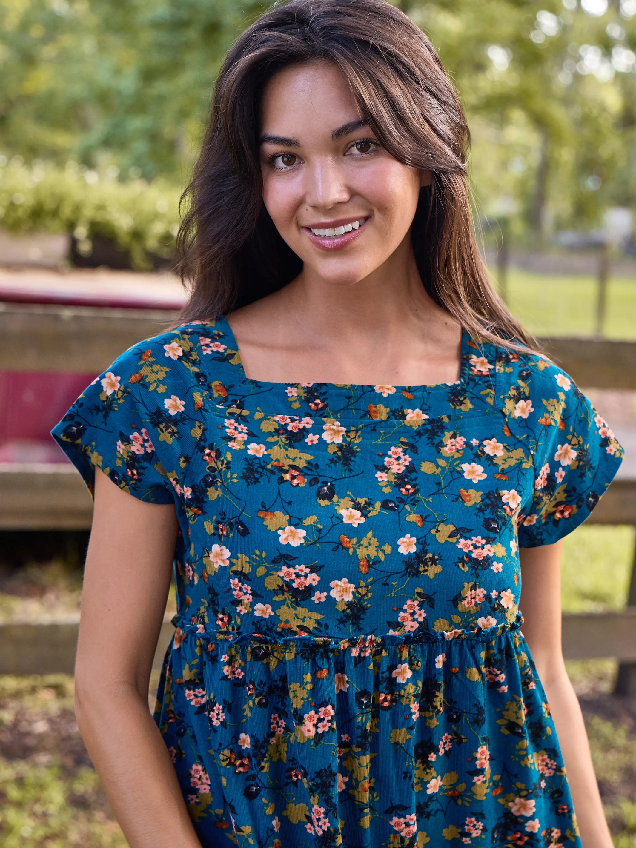 Lily Cotton Short Sleeve Tee Shirt - Blue Floral