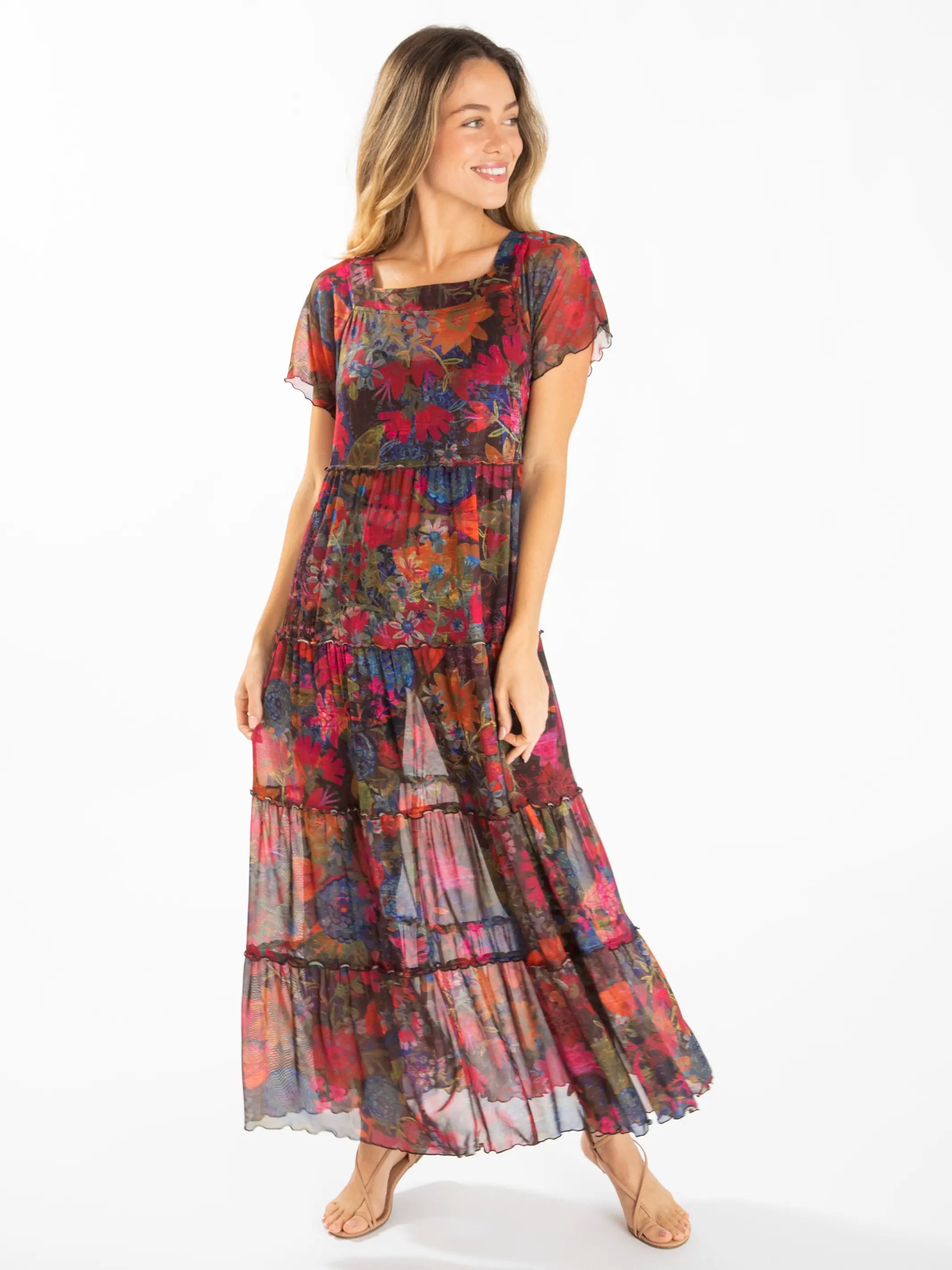 Berkley Mesh Maxi Dress - Dark Floral Garden