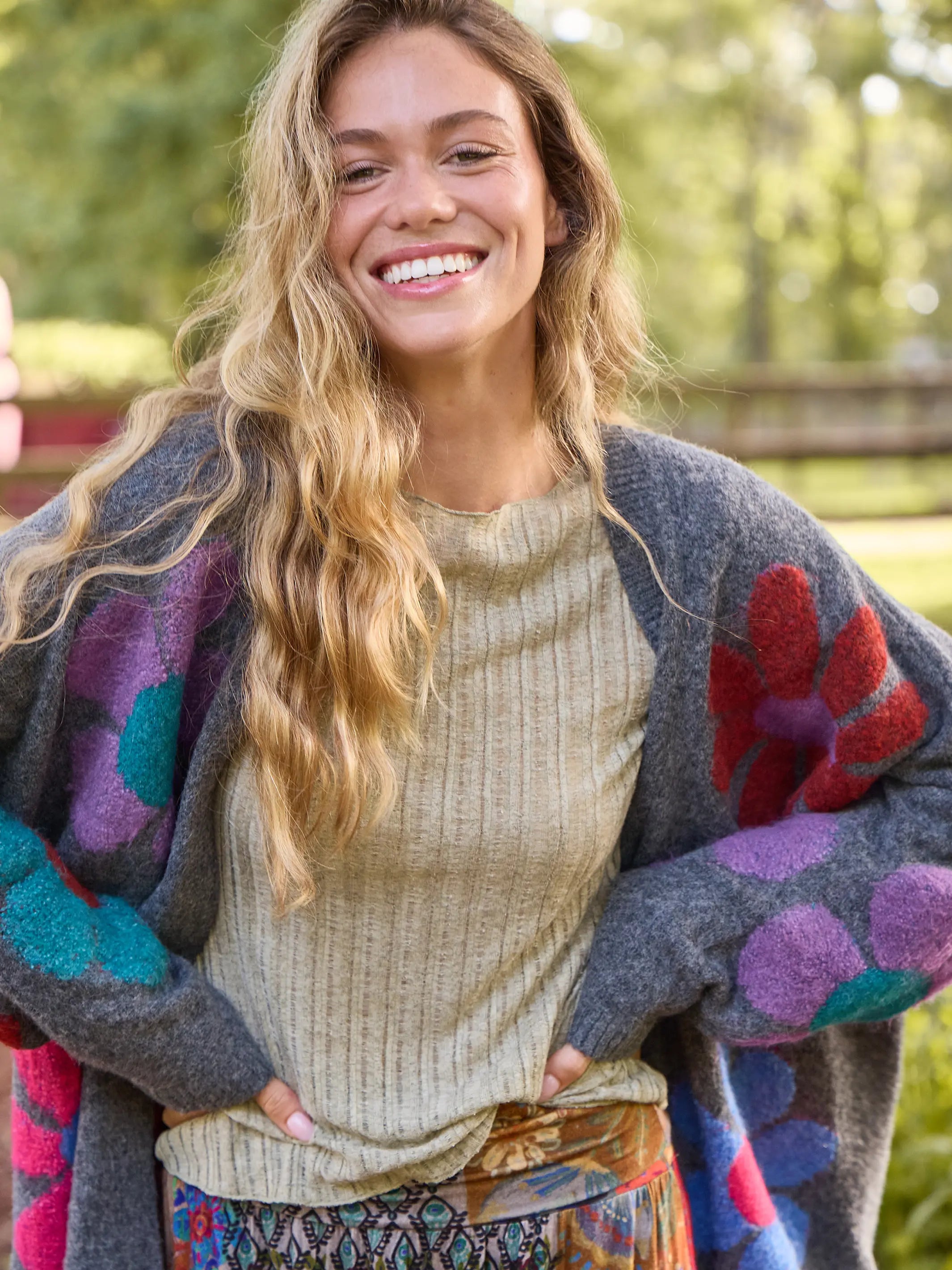 Live Happy Cotton Cardigan Sweater - Charcoal Rainbow