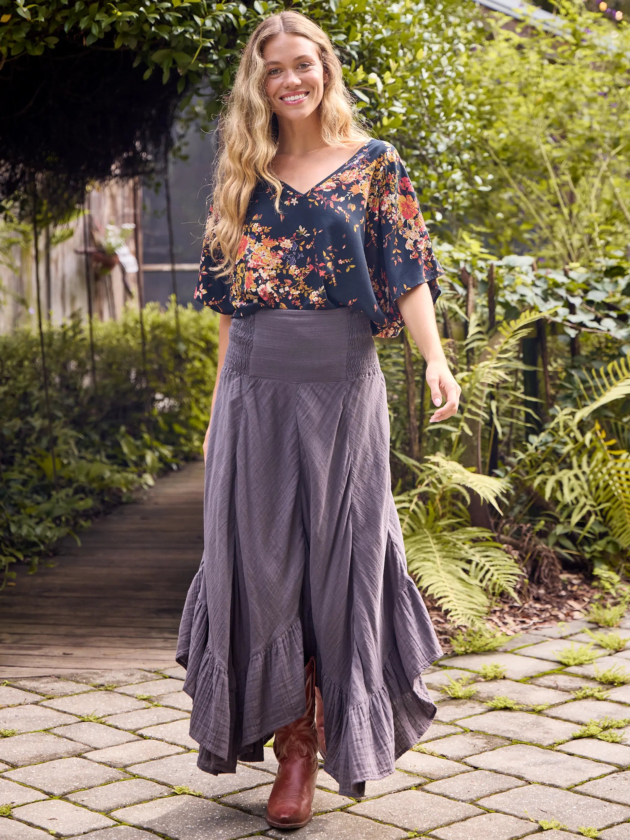 Hanna Convertible Maxi Skirt - Navy Red Bouquets