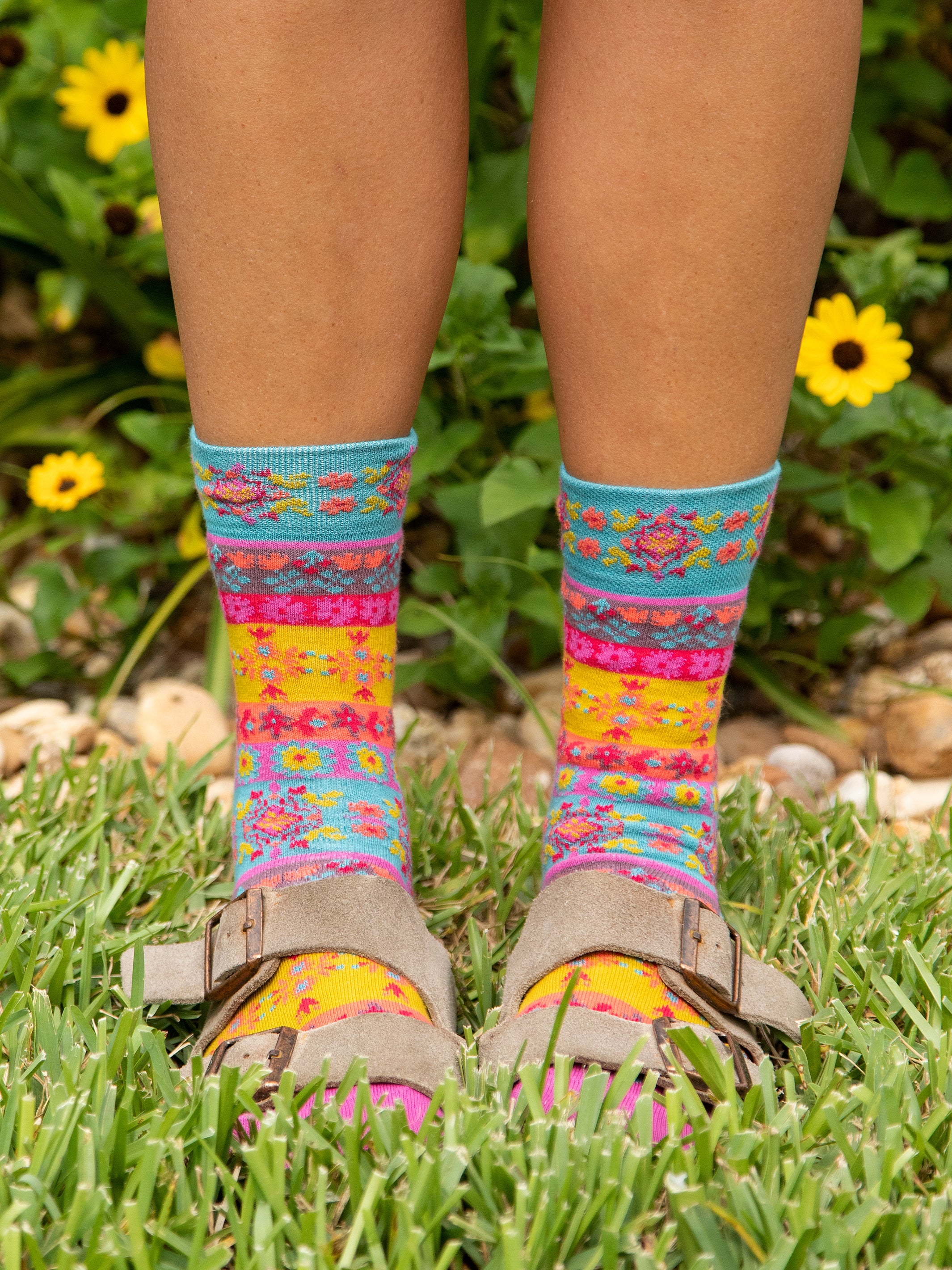 We searched high and low for the BEST sock makers in the world! These socks are soft, thick, stretchy and so boho! We love to wear them with our Birks!